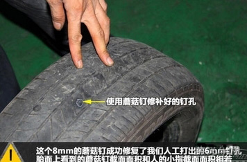 這種方法和上面的貼片類似,但補(bǔ)片更換成蘑菇狀的橡膠釘,將補(bǔ)片插入破損的孔中進(jìn)行補(bǔ)孔,相對(duì)而言,價(jià)格高于100元,而且孔的尺寸不能太大,但修復(fù)效果最好,相對(duì)安全徹底。