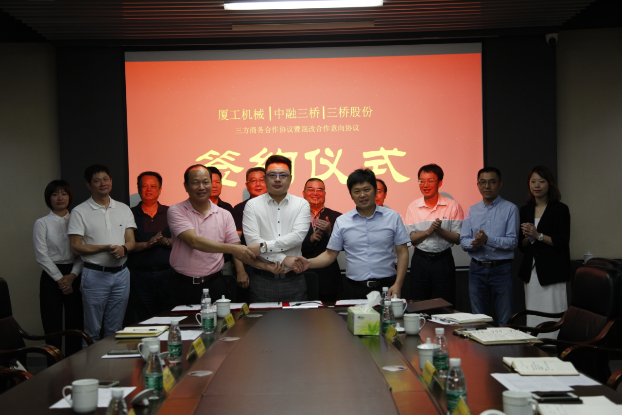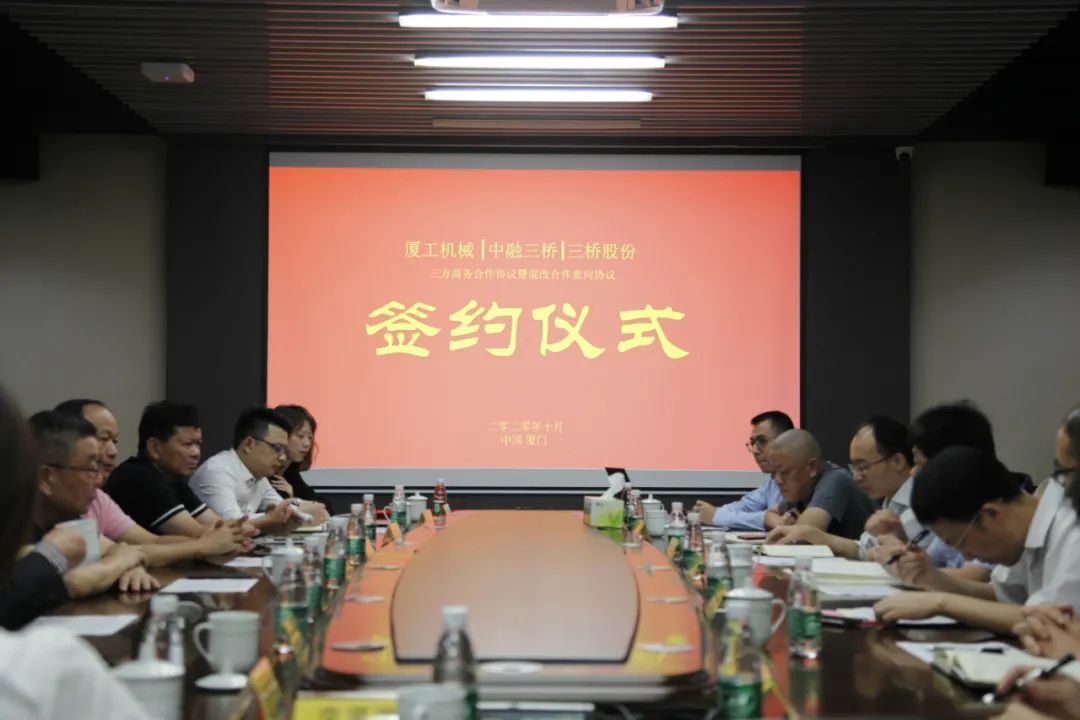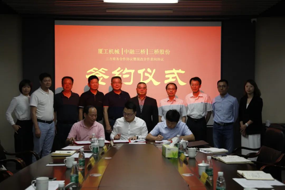 福建省機械工業(yè)聯(lián)合會會長許振明;廈工股份公司總裁林春明、副總裁兼財務總監(jiān)李喜勇、總工程師黃鶴艇;中融三橋公司蔡報軍、董事長姜洋、總經理吳繼成出席簽約儀式。