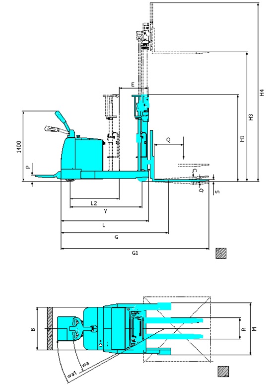 Dimensions(尺寸) | Overall length of frame(mast no reach)(整車長(zhǎng)度)(門架沒(méi)前移不含貨叉) | L | mm | 1500 | 1700 | 1800 |