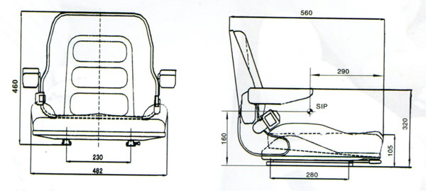 座椅為叉車及其它工業(yè)車輛設(shè)計(jì)的經(jīng)濟(jì)型駕駛員座椅。它沒有懸浮裝置。但其座背、靠背均采用真空發(fā)泡一次成型技術(shù),便于拆換。